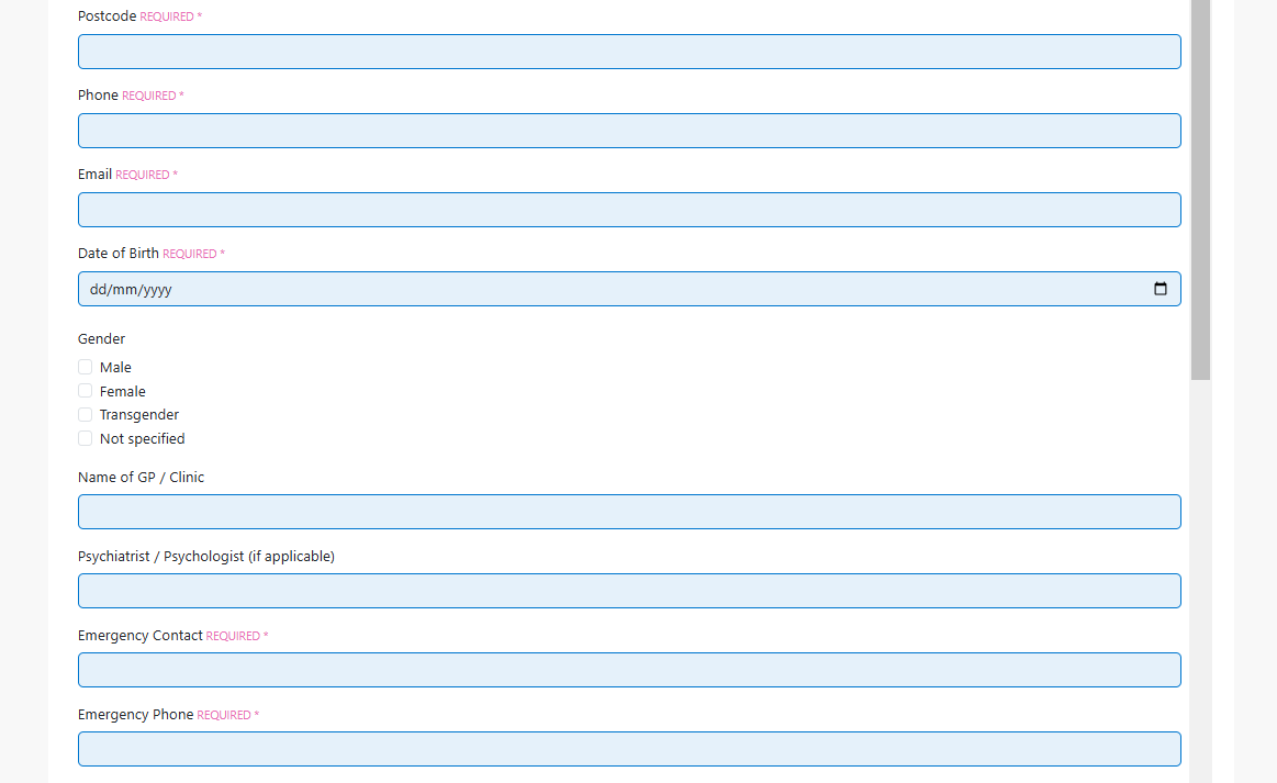 - Keep your form short and simple. If they’re too long or detailed, clients are less likely to complete them. Remember, they’re not designed to replace the valuable time you spend with clients during consultations.