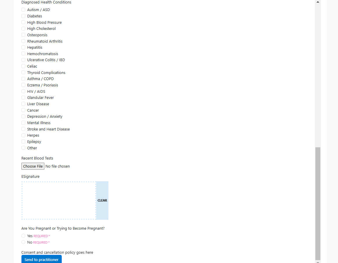 - There is a confirmation message that appears after the form has been submitted to advise that the form has been sent to the practitioner. If the patient does not see this, then the form hasn't been sent.