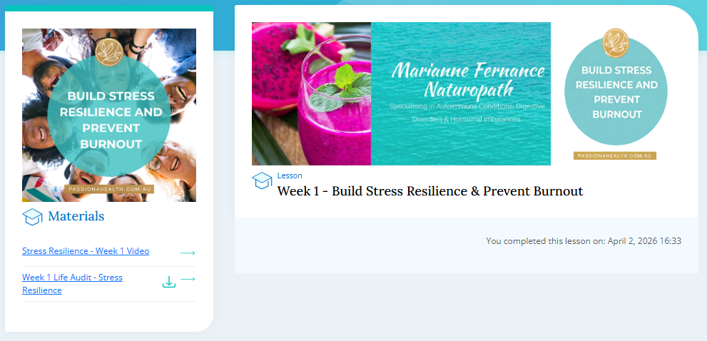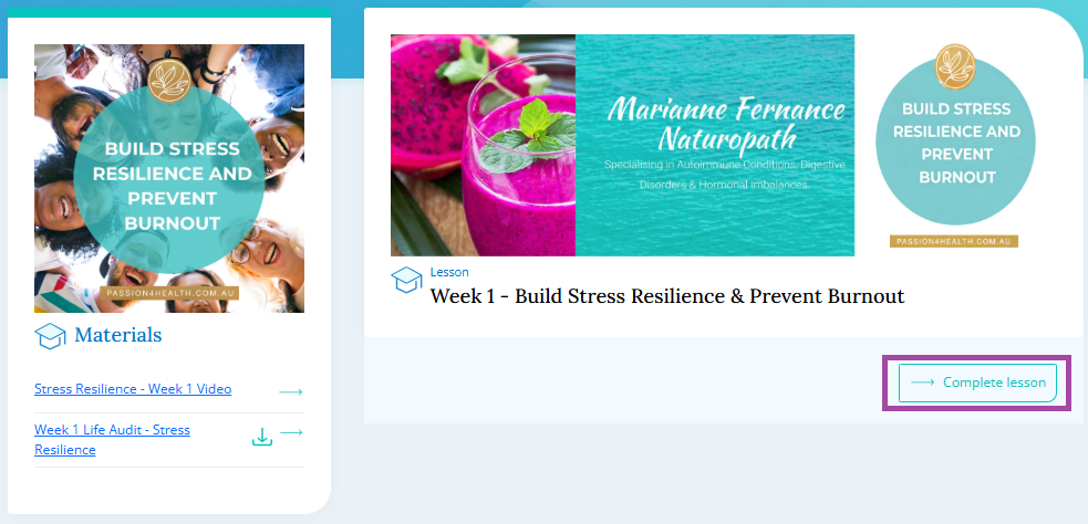 Unlocked lessons can be marked as complete as below. This will show in the Activity Feed in your SimpleClinic practitioner application.