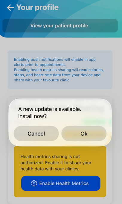 - Go to Your Profile by selecting the icon in the top right corner -> view the current and available builds (if any) -> if there is an available version this mean you are not on the latest version and need to update the app -> go to the app store to update.