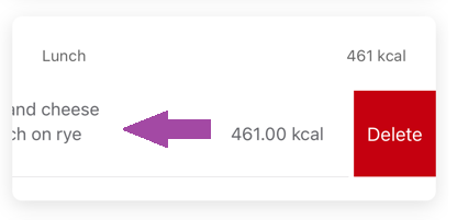 Step 9. To delete an entry -> slide the item across to the left and select the delete button that appears as below.