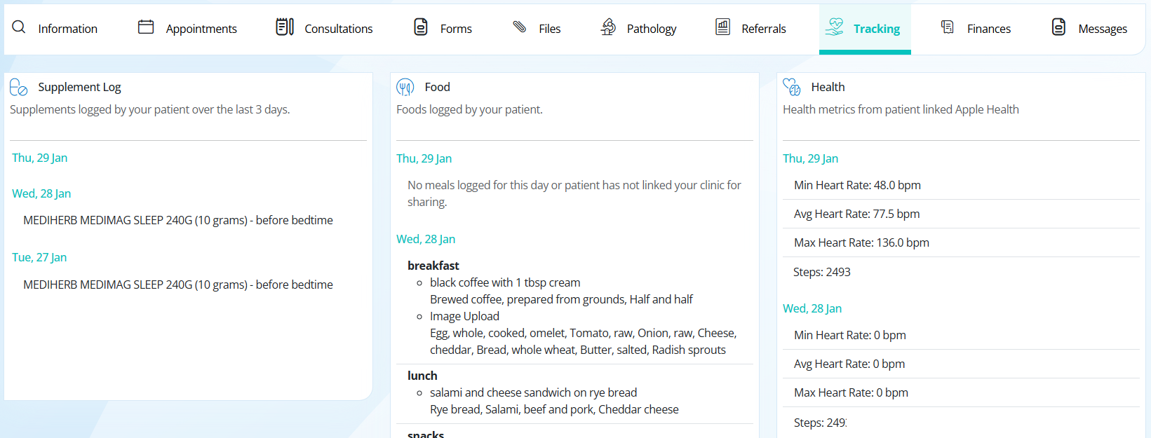 Patients can use various devices to track their health in the in built Apple apps, this data can be viewed below if the patient chooses to share it through the Patient Portal mobile app.