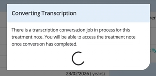 Converting Transcription - after selecting 'Create Treatment Note'